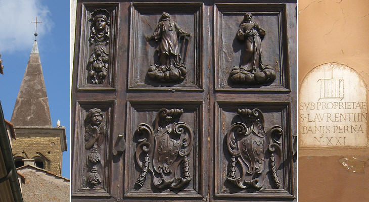 The first church was probably built at the time of Emperor Constantine on the site of St. Lawrence's martyrdom; the church was rebuilt in the XIVth century together with a large nunnery which was assigned to the Poor Clares. The façade was redesigned in 1574, while the elaborate wooden door was made in 1684.