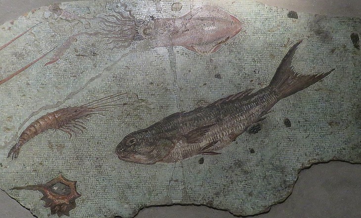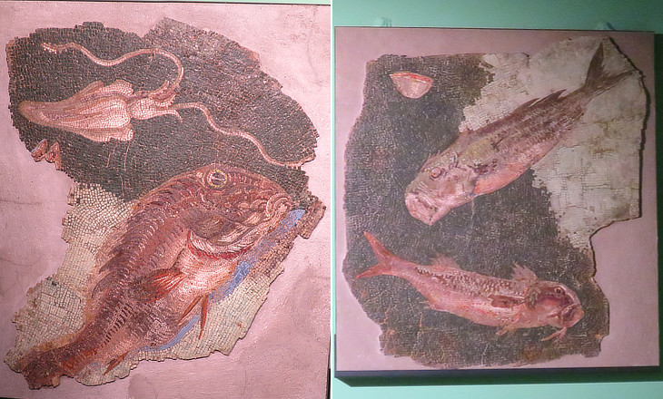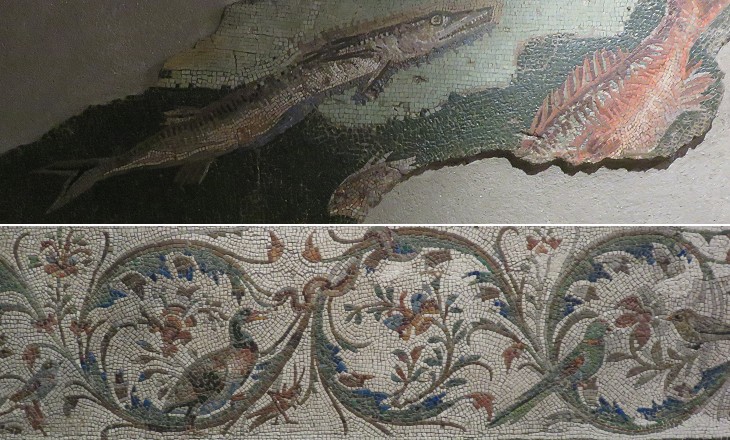 Centrale Montemartini: another detail of the mosaic; you may wish to see catalogues of sea creatures in mosaics in Tunisia and Spain