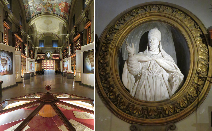 Biblioteca Alessandrina - interior with a bust of Pope Alexander VII by Domenico Guidi