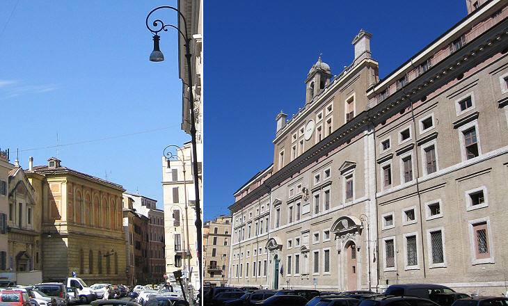 The view in June 2009: (left) S. Marta and Via del Piè di Marmo; (right) Collegio Romano