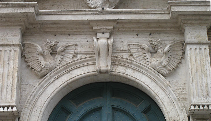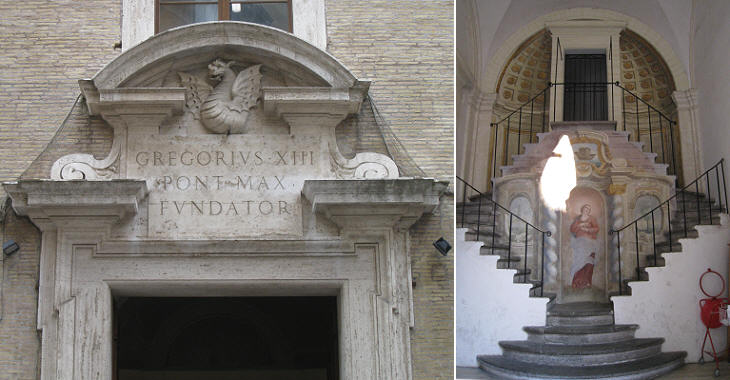 The Counter-Reformation effort needed support from a theological/cultural viewpoint and the Society of Jesus, the order founded by St. Ignatius of Loyola, provided it through a series of educational institutions in all Catholic countries. In Rome the Jesuit schools were housed in Collegio Romano, a large building, the construction of which was promoted and completed by Pope Gregory XIII in 1582-1583. The heraldic symbol of the Pope was a dragon and this explains why dragons were placed in so many parts of the building. Many future popes and cardinals studied here, but the schools were not reserved only to those who embraced the ecclesiastical career.
