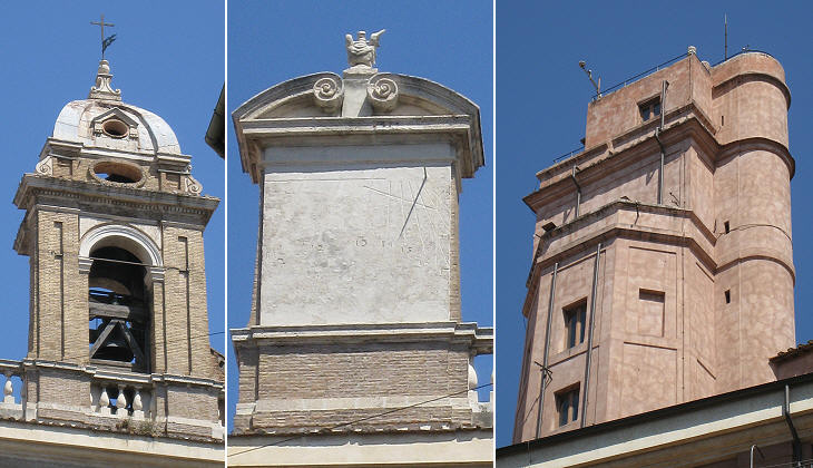 (left) Bell tower; (centre) sundial; (right) astronomical observatory
