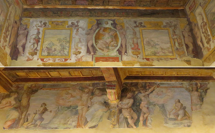 The loggia was decorated as an outdoor garden with a small fountain similar to those which Cardinal Ippolito d'Este had in his palace at Tivoli. The frescoes on the ceiling completed the illusion.