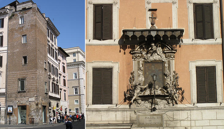 (left) Tor Sanguigna; (right) a very rich XVIIIth century "madonnella" in Piazza di Tor Sanguigna
