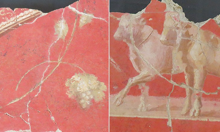 By searching for evidence of the history of the palace in 1991 restorers discovered that the building stood over a Roman house of the Ist century AD. They recovered fragments of its frescoes; they were painted on a red background which is typical of Pompeii. The house was not very far from Stadio di Domiziano.