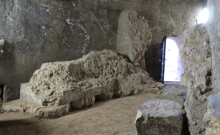 Inside the inner circular building which contains the lower part of a circular pillar with two sepulchral rooms