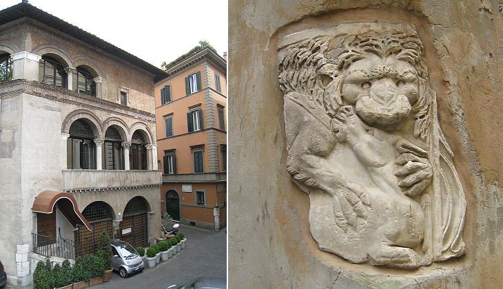 (left) Albergo dell'Orso; (right) the relief which has given the name to the street