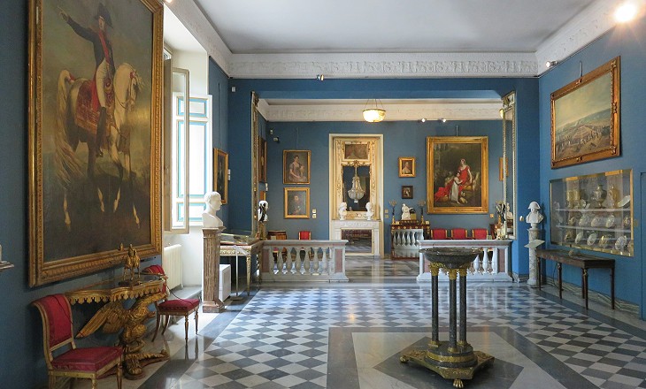 Count Giuseppe Primoli was a grandson of Zénaïde Bonaparte, a niece of Emperor Napoleon and he decorated his palace in the style of the First French Empire, although some rooms in the rear part of the building retain their old ceilings and frescoes. In 1927 he donated his collection of paintings, statues and other memorabilia of the Bonaparte to the City of Rome to form what is now Museo Napoleonico. Palazzo Primoli houses also the apartment-museum of Mario Praz, a professor of English Literature at the University of Rome (d. 1982) who gathered there an extraordinary collection of furniture and other items of the early XIXth century.