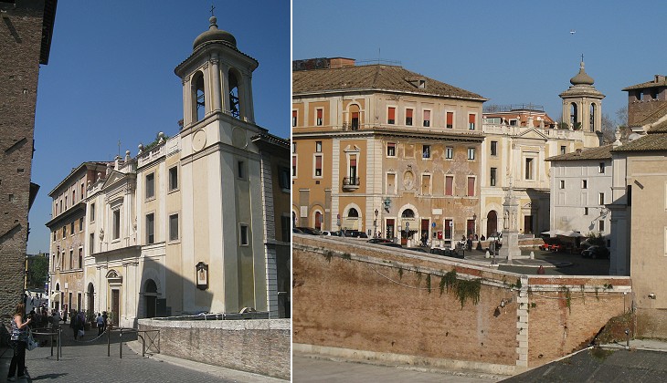 Chiesa di s. Giovanni Calibita, e spedale de' BenfratelliNel sito di questa chiesa aveva la sua casa il s. Titolare, la quale essendo poi convertita in chiesa, da prima fu unita ad un monastero di monache; ma essendo queste trasferite presso s. Anna de' Funari, fu questa con il convento conceduta ai religiosi spedalieri di s. Giovanni di Dio, dati i Benfratelli, i quali vi eressero lo spedale per li poveri civili e nobili. Quindi volendo nell'anno 1600. rinnovare la chiesa, trovarono alcuni corpi di Santi, fra' quali quello del s. Titolare con altre reliquie e poi nell'anno 1742. fu ornata di marmi, stucchi dorati, e pitture assai vaghe. Il quadro sull' altare maggiore è di Andrea Generelli detto il Sabinese, e i laterali sono di Corrado Giaquinto, il quale ha fatto tutte le pitture a fresco nella volta, ed anco il quadro di s. Antonio nell'altare a destra. Nel convento evvi la natività del Signore creduta opera di Raffaelle da Urbino.Chiesa di s. Benedetto in PiscinulaQuanto antica e divota, altrettanto sguarnita, e mal ridotta è questa chiesa, sebbene sia parrocchiale. Fu eretta nell'estremità del palazzo della antichissima famiglia Anicia, in cui dimorò s. Benedetto mentre era giovinetto, e vi è tradizione, che l'immagine della ss. Vergine, che si conserva in una cappelletta posta nel piccolo portico di questa chiesa, sia quell'istessa, avanti alla quale il santo Giovinetto spesso orava; perciò fu dipoi al medesimo s. Benedetto dedicata, la quale dall' antico nome della vicina piazzetta, si dice in Piscivola. |