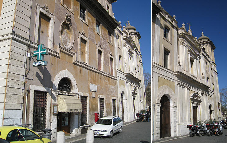 (left) XVIIIth century façade of the hospital (now housing a pharmacy); (right) S. Giovanni Calibita