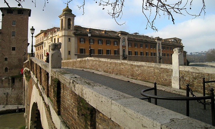 Isola Tiberina was the site of a temple/shrine to Asclepius, Greek god of Medicine, so the foundation of Spedale di S. Giovanni di Dio in 1584 suited the ancient function of the island.