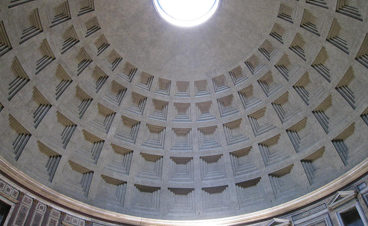 whereas Roman engineers lightened as much as possible the dome of the Pantheon; not only its thickness progressively decreases,