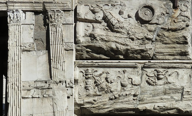 The northern wall of a large basilica dedicated to Neptune is visible at the back of the Pantheon: the decoration is based on dolphins, tridents and shells and it is a clear reference to the god. This pattern was used in other ancient buildings and it eventually influenced Renaissance arcitects as one can see at Palazzo Ducale di Urbino.