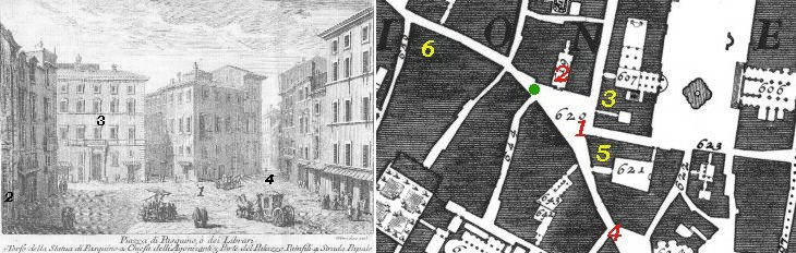 and who had a reputation for lampooning. Giuseppe Vasi included it in his 1752 book covering the main squares of Rome, but the statue