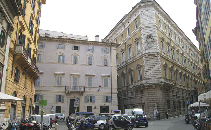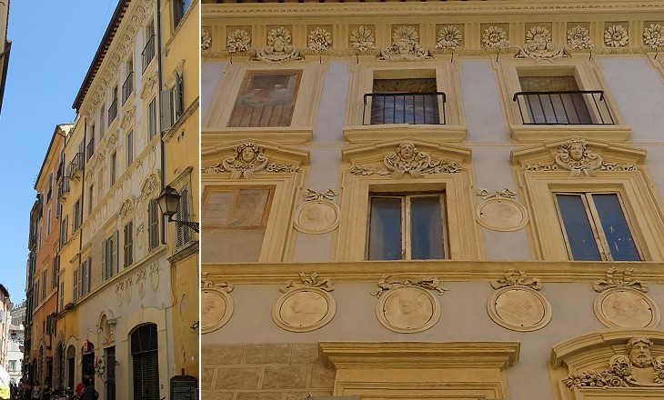 Before the construction of Palazzo Braschi the most important building in Piazza di Pasquino was the rear side of Palazzo Pamphilj; in 2009 a careful restoration cleaned the elaborate decoration of its windows and brought the façade back to the colour it had in the XVIIIth century (see a page on the changing colours of Rome).