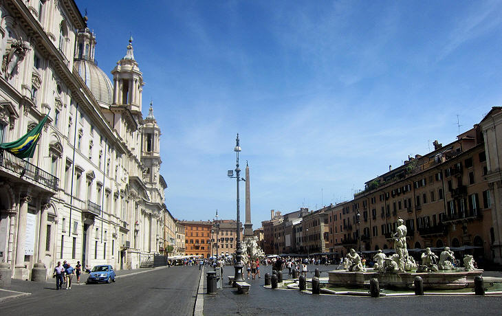 The name of the square (Navona=large ship) is probably due to its shape, which derives from that of the stadium built by Emperor Domitian upon which it stands.