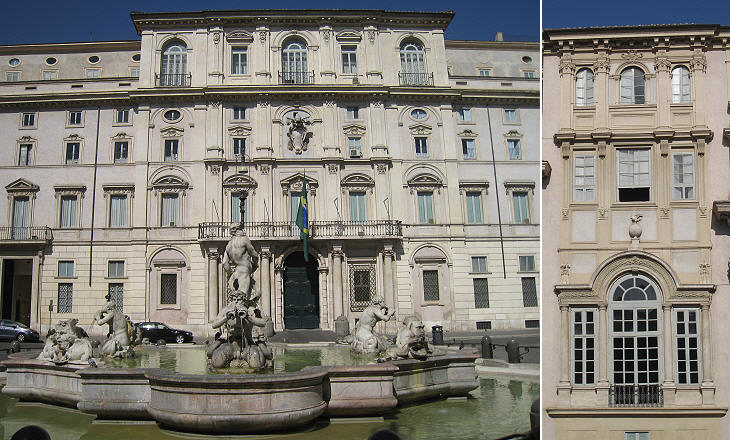 (left) Palazzo Pamphilj (which today houses the Brazilian Embassy to the Republic of Italy); (right) the addition designed by Francesco Borromini