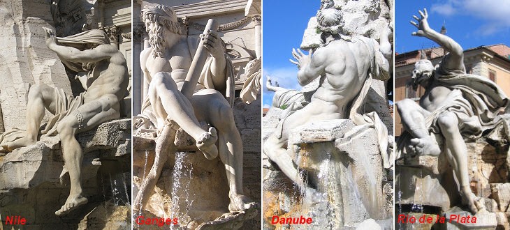 R. Wittkower), Nile (by Giacomo Antonio Fancelli), Danube (by Antonio Raggi),