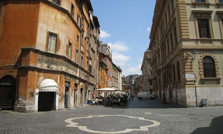 the borders among Rione Sant'Eustachio (around S. Maria in Publicolis), Rione Regola (left) and Rione Sant'Angelo (right).