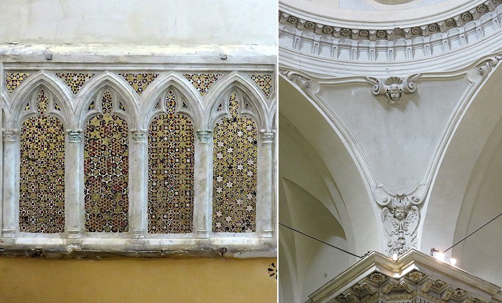 (left) Decoration from the former church of S. Salvatore a Cacaberis which was replaced by S. Maria del Pianto; (right) a pendentive decorated with early XVIIIth century stuccoes