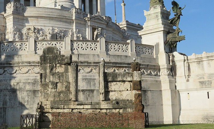 Northern side of the tomb and behind it the lower part of Monumento a Vittorio Emanuele II