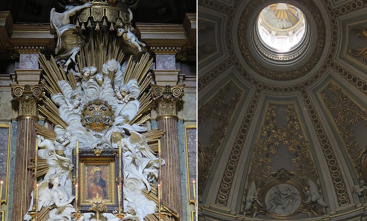 SS. Nome di Maria: (left) main altar with stucco statues by Andrea Bergondi; (right) interior of the dome