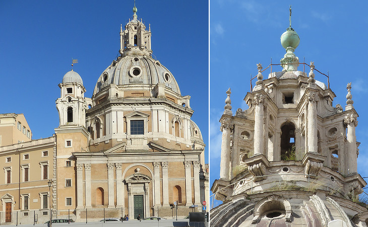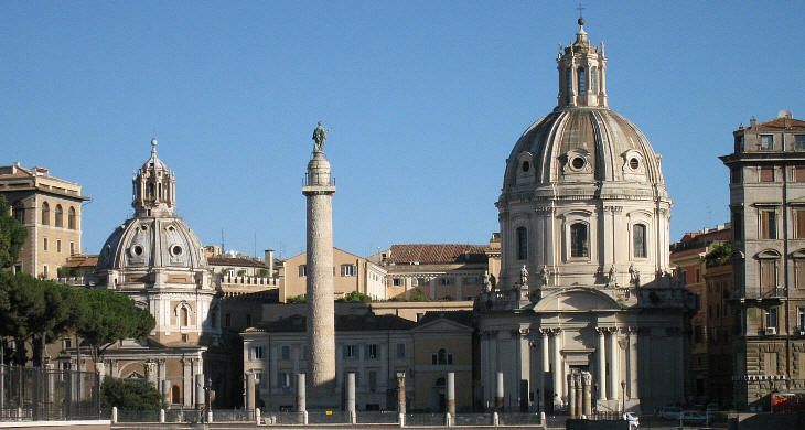 S. Maria di Loreto (left) and SS. Nome di Maria (right) seen from the western end of Trajan's Forum
