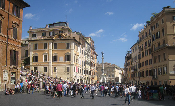 The old inns have been replaced by primary chain stores so Piazza di Spagna continues to attract foreign travellers; the main change relates to the erection of Colonna dell'Immacolata in 1857. Some houses are higher than they were in the XVIII century; their terraces are much sought after (you may wish to visit the House of Isa and Giorgio de Chirico at the top floor of one of them).