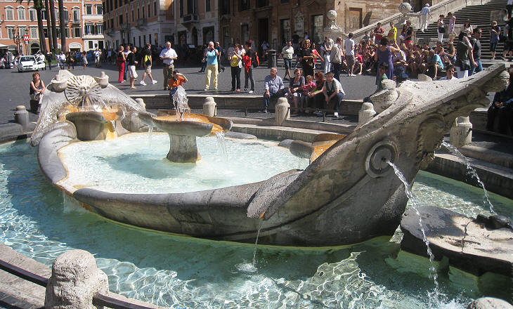 La Barcaccia, the ugly boat, but "barcaccia" was the name given to the shallow boats which carried wine to Porto di Ripetta; you can see it also in the image used as background for this page