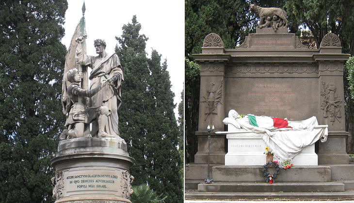 (left) Monument to the Fallen Papal Troops (designed by Vespignani; statues by Vincenzo Luccardi);