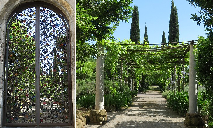 (left) Gate decorated by Jannis Kounellis in 2007; (right) Cistercian garden (redesigned in 2004)