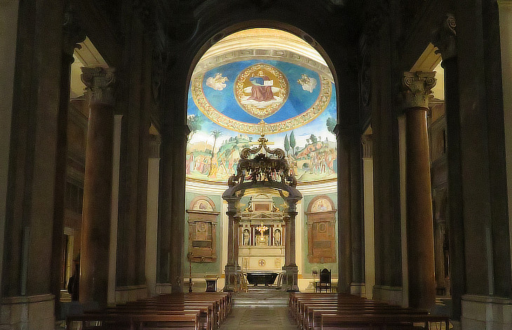 The main altar and the apse were not the heart of the church. Pilgrims went to S. Croce in Gerusalemme to see the fragments of the True Cross and other relics and these were kept in an underground chapel which is said to have been built by