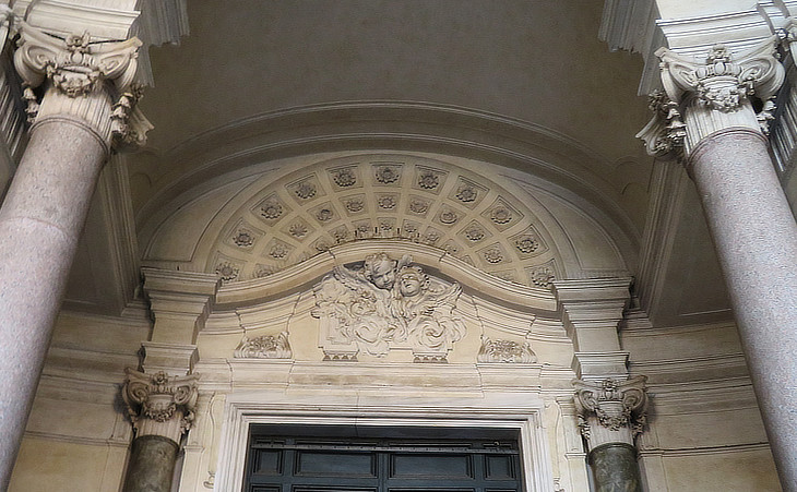 Vestibule: inner portal (see similar heads of angels by Francesco Borromini at S. Giovanni in Laterano)