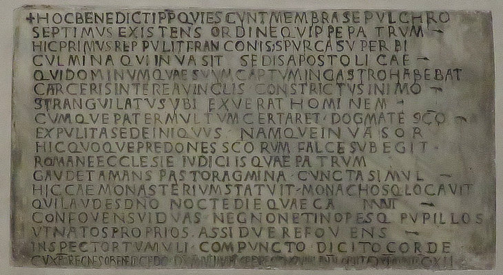 Funerary inscription of Pope Benedict VII with references to Benedict VI and Antipope Boniface VII