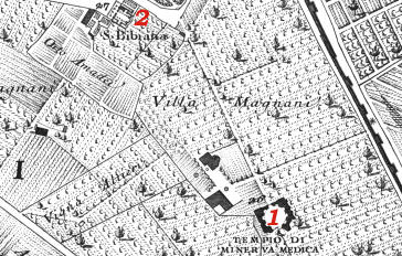 The small 1748 map here below shows 1) Tempio di Minerva Medica;