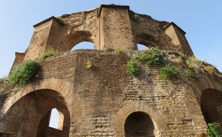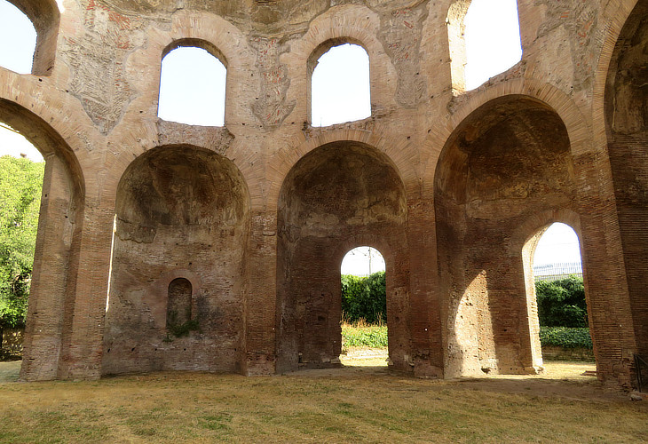 The drum has the shape of a decagon and it supports a concrete dome having a diameter of 25m/82ft, the largest one of ancient Rome after those of the Pantheon and of the calidarium of Terme di Caracalla. The construction technique is different, much lighter than that of the Pantheon and with large windows; it recalls the Baths built by Constantine at Trier.