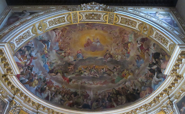 Ceiling of the apse with a fresco depicting saints and angels in Heaven by Giovanni di S. Giovanni aka Giovanni Mannozzi