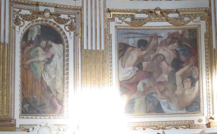 Apse: two paintings portraying the sculptors being led to their martyrdom and their fustigation