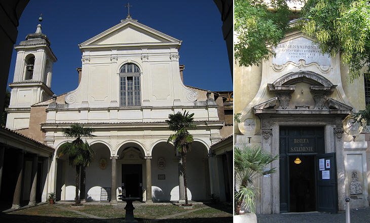 (left) Medieval porch, which is very similar to those of S. Cosimato and S. Prassede; (right) portal leading to Collegio S. Clemente, the convent attached to the church