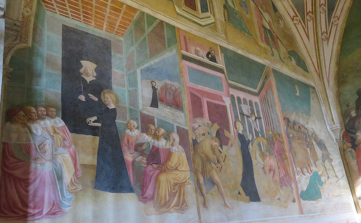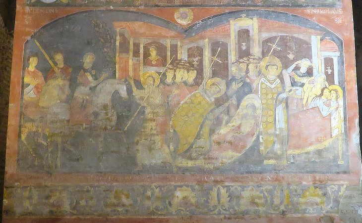 Lower church - nave: XIth century fresco depicting events of the life of St. Alexius (from Wey's book); see the church dedicated to him on the Aventine