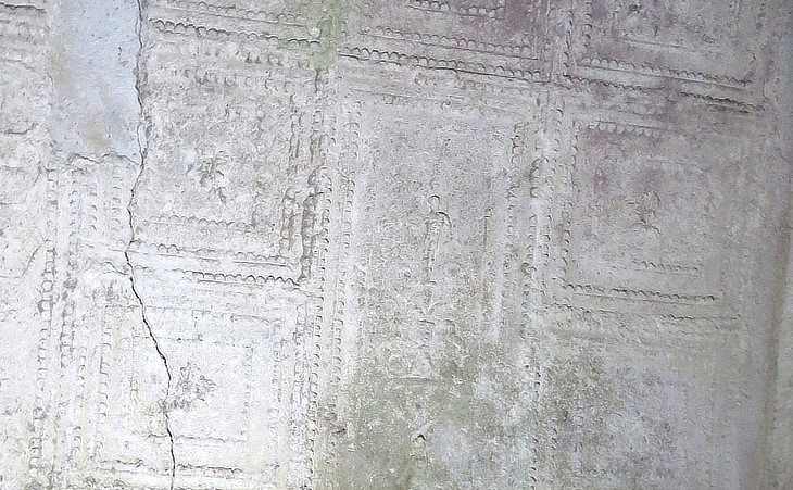 Vestibule of the "mithraeum": a detail of the ceiling (see some fine stuccoes which were discovered in the late XIXth century in the palaces on the Palatine and at Villa Adriana)