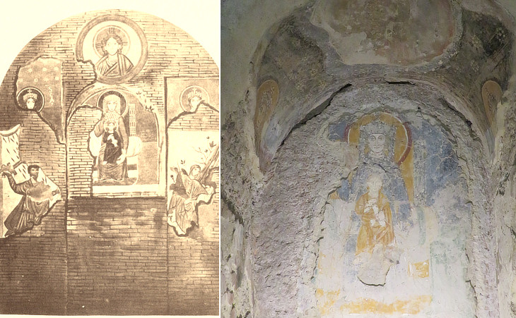 Lower church - north aisle: niche of the Madonna (VIIIth century): (left) Mullooly's book: (right) as it is today