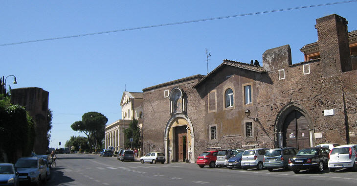 periods of the history of Rome: a pillar of an ancient aqueduct (Aqua Claudia), an Early Christian church (S. Stefano Rotondo), a series of medieval buildings (Hospital of S. Tommaso in formis) and the Renaissance façade of S. Maria in Dominica.