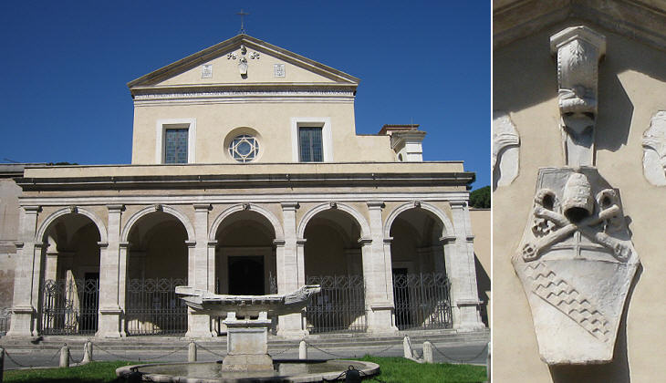 (left) Façade; (right) coat of arms of Pope Innocent VIII