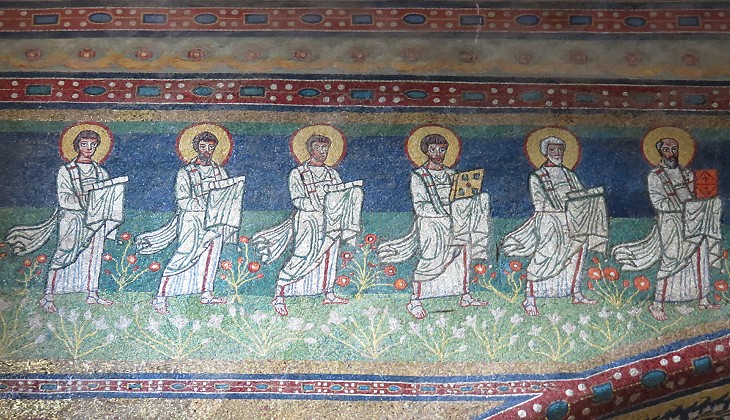 Arch around the apse: detail of its mosaic showing a procession of saints