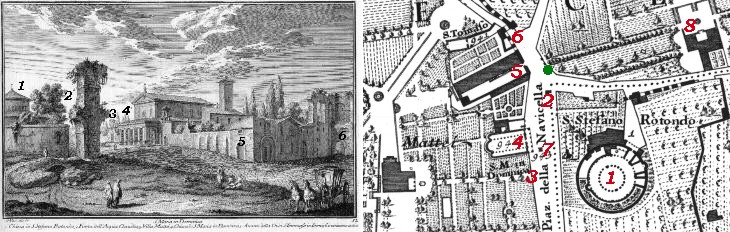 In the description below the plate Vasi made reference to: 1) S. Stefano Rotondo;