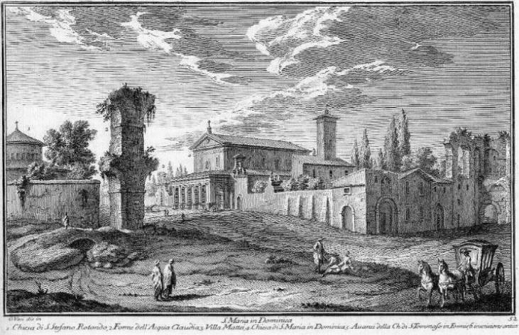 2) Ruins of Acqua Claudia; 3) Entrance to Villa Mattei; 4) S. Maria in Dominica (or Domnica), a corruption of Latin Domini which means "of the Lord"; 5) S. Tommaso in formis;