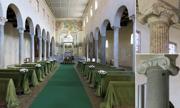 In the 1920s all the side altars and other mainly XIXth century additions were removed in order to reveal the original design of the church which was based on fine columns taken from ancient monuments. Their shafts are of yellowish pavonazzetto and grey granite. These stones, unlike white marbles, could not be burned to make mortar.