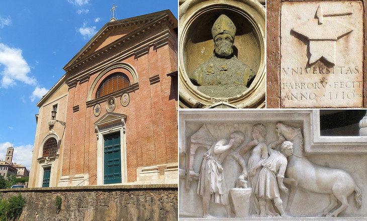 The church is in the valley between the Palatine and the Capitoline hills. It was built in 1562 and it still belongs to the brotherhood of the guild.