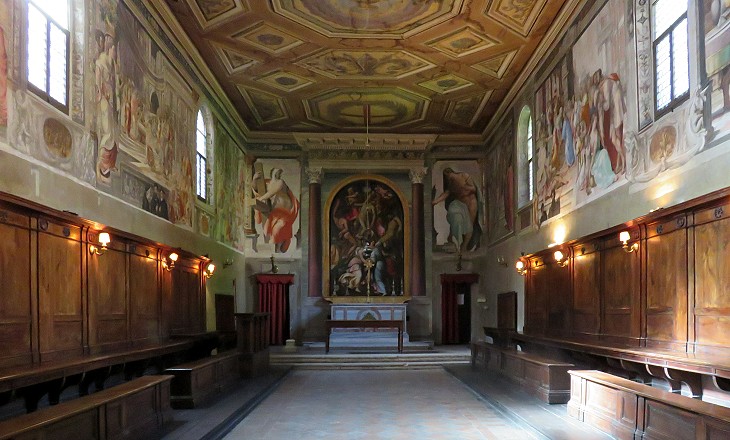 The interior of the church has a rich decoration and paintings by Giorgio Vasari and other Florentine mannerist artists.